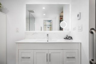 -Installation d'un nouveau meuble-lavabo dans la salle de